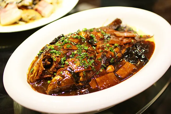 紅燒雞格郎??雌饋砭秃苡惺秤囊坏啦税?,第一次聽說雞格郎這個名字,完全沒想到它是一道魚肉菜,雞格郎對水質要求很高,它的肉質細嫩,味道鮮美,同旁皮魚一樣是淀山湖特產,來到這里一定要嘗一嘗。