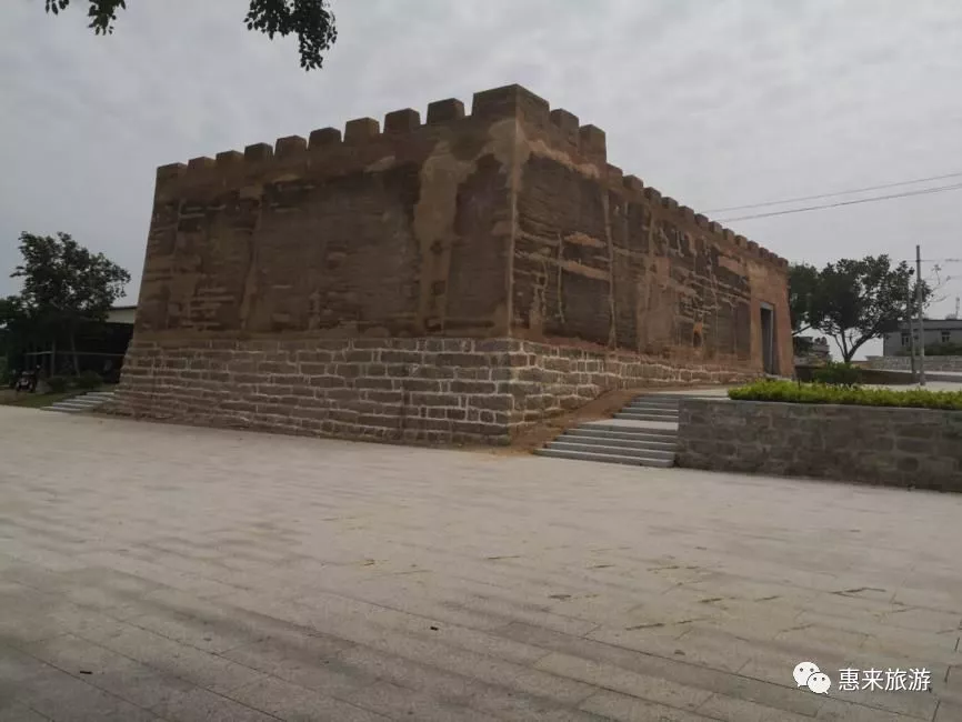靖海古城區(qū),唐宋時已有漁民居住,元順帝時,附近大坭都后表樓18鄉(xiāng)受??芮謹_,村民遷徙至此定居,因村落分布呈卵形。明洪武二年(1369),廣東都司在此設置守御所,隸屬于潮州衛(wèi),設千戶總兵,統兵1121名,平息寇患、安靜海疆,定名“靖海千戶守御所”,簡稱“靖海所”。為抵御寇患,明嘉靖二十八年(1549)奉旨建城,歷13年始成。康熙三十八年已卯(1699)重修,雍正五年丁未(1727)年又修。城墻周長501丈,墻高1丈4尺,城墻兩邊系條石壘筑,中夯灰土。墻上布滿垛口,垛上有望孔,城墻頂為跑馬道,寬約4米。古城設東、西、南、北4個城門,城門上均勒石刻牌匾:東曰“表海勝概”,西曰“靖海安瀾”,南曰“化捷趨虞”,北曰“萊鑰永固”。4個城門樓均配套建設甕城及城樓。城墻四角有突出城外并高于城墻的方形轉角臺,現存東南、東北角。城內貫通四門的長十字形架干道骨及卵形圍墻形成古城獨特的象形格局,稱為“象城”。1952年,南城門連城墻一帶被拆除,北門、西門、東門,連同部分城墻今猶存,566米的城墻保存完好。靖海古城歷經460多年歷史的滄桑之后,至今仍保留原來的風貌,是粵東地區(qū)迄今保存較完好的古城墻遺址,對研究古建筑及軍事設施以至明清城鎮(zhèn)規(guī)劃建設具有重要的價值。2010年5月被廣東省人民政府列為第六批省級文物保護單位。