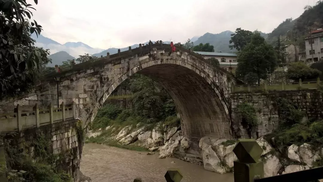 所踩之橋名叫太平橋,當(dāng)?shù)厝擞纸蓄∷蠊皹?,位于綿陽(yáng)市安州區(qū)雎水鎮(zhèn)睢水關(guān)虎頭山下,是一座被譽(yù)為“川西之冠”的巨型單孔弧形石拱橋。