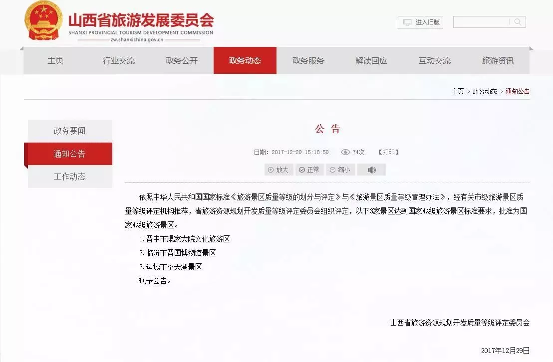山西旅游發(fā)展委員會(huì)官網(wǎng)消息: