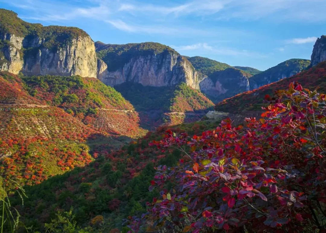 更為一絕的是四方山紅葉秋景,秋季漫山遍野,蔚為壯觀(guān),可與北京香山紅葉相媲美。大美太行,紅艷四方,讓人心曠神怡,流連往返的地方,美麗的黎城四方山!