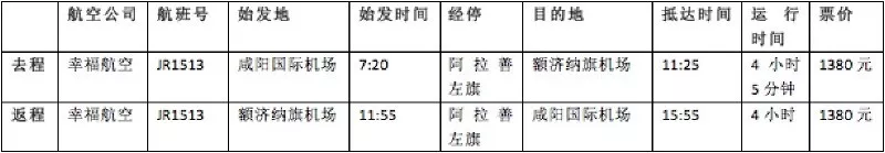 ②飛機:全國只有一趟--“西安—額濟納旗”