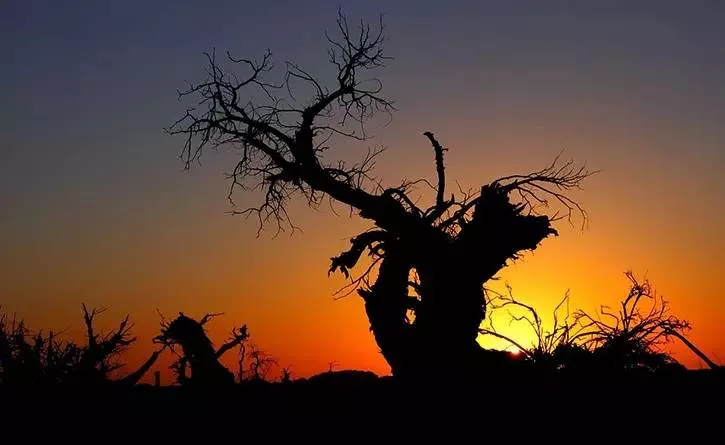 二、黑城怪樹林景區(qū):拍胡楊枯樹剪影