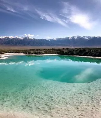湖面翠綠見底,潔白的鹽晶厚厚地鋪在水底和岸邊。天空蔚藍,平靜無風,湖面形成清晰的倒影。抵達翡翠湖時,瞬間被驚呆了,沒有一絲風,湖面很靜,真是如鏡子一般,湖邊是潔白的鹽,湖水翠綠,不敢相信自己的眼睛。翡翠湖的風景是很不錯的,很多顏色不一樣的池子,晴天或多云天氣,沒有風的時候,天空之境妥妥的。宛若掉入沙漠中的寶石,湖水和天空一樣湛藍深遠。