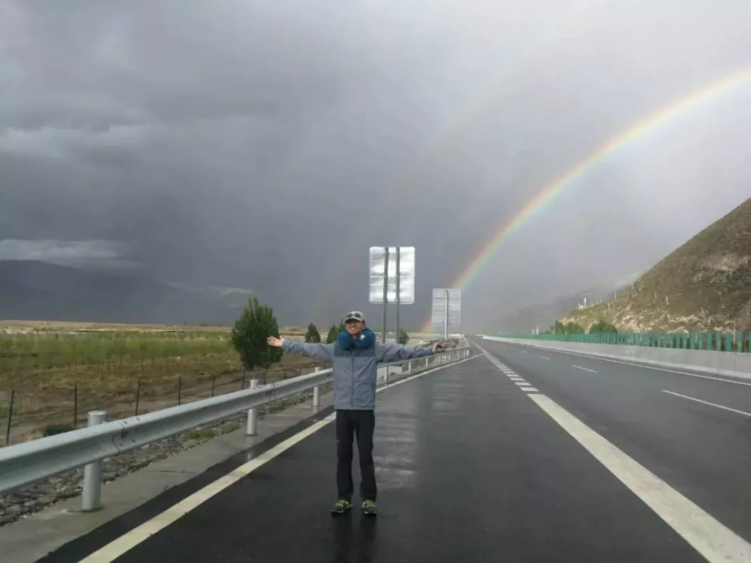 林芝拉薩經(jīng)歷冰雹之后的看見的雙彩虹