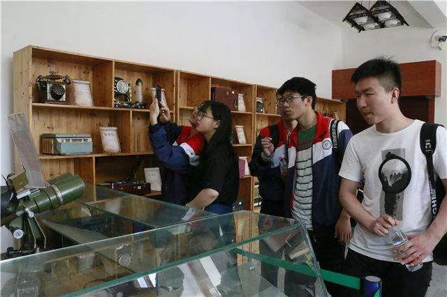 學(xué)生們駐足老照相機(jī)前