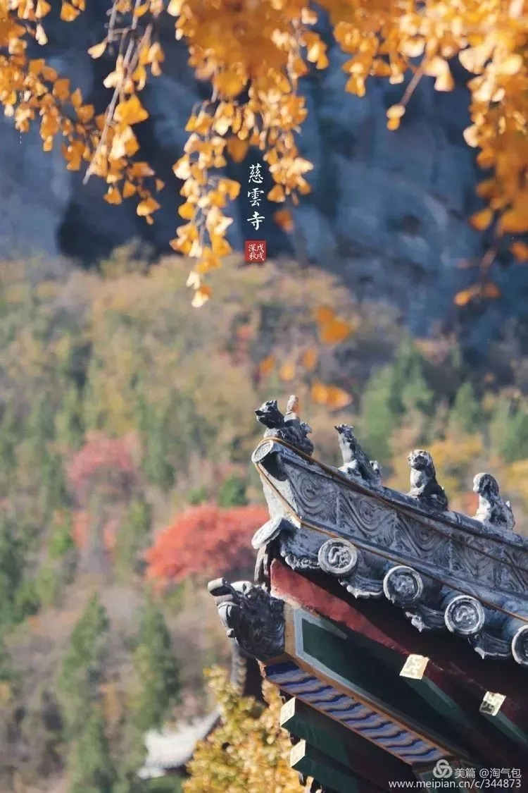 秋天是青龍山慈云寺最浪漫和激情的季節(jié),從山門(mén)沿山路而上,大自然神奇妙筆為這座山披上了五彩的花衣,展示了它的美好和絢麗。黃瓦、紅墻、火紅的紅葉、金黃的銀杏,令你心曠神怡、久久沉醉。