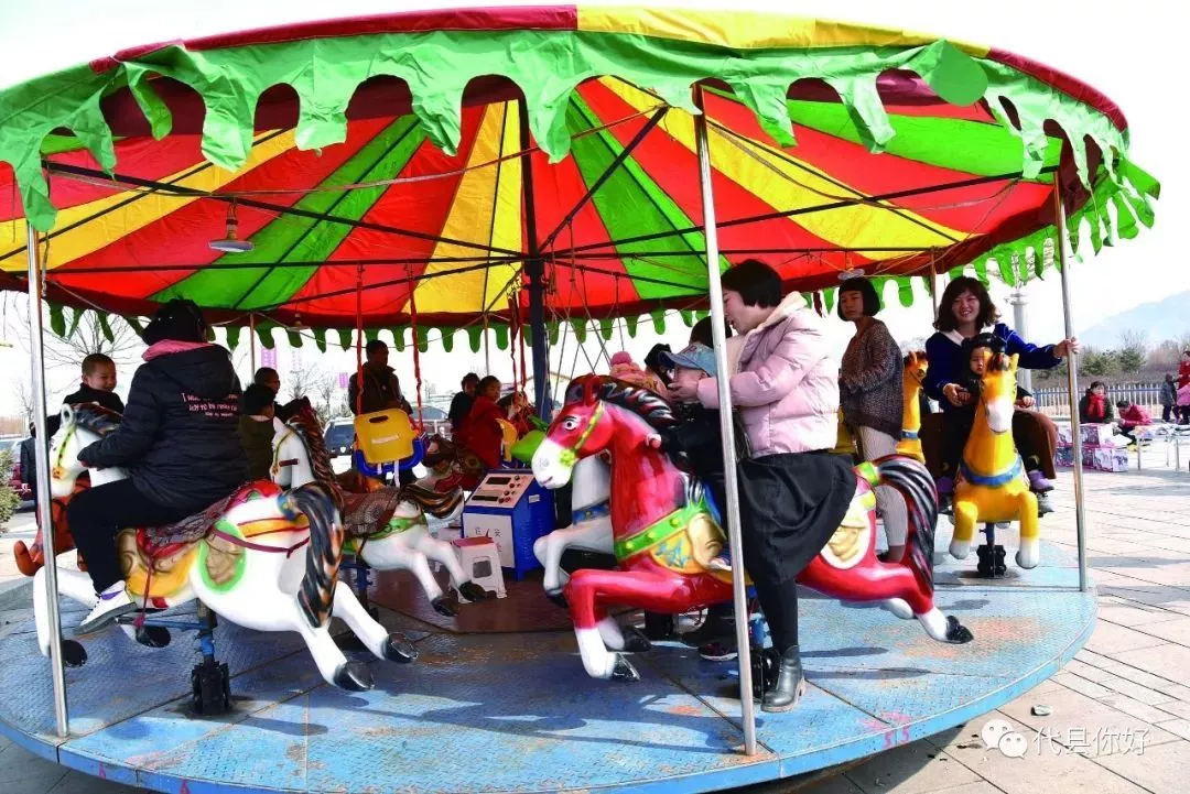 圖為大人小孩坐轉(zhuǎn)馬