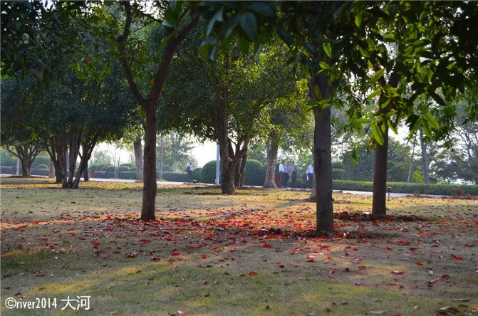 而同時(shí)一些紅葉紛紛飄落在樹下,提醒我們畢竟秋天已經(jīng)到來了。