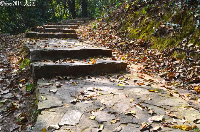 除了沿著剛才可以通行機(jī)動(dòng)車的馬路爬山,也可以走這樣的僻靜小道,大多時(shí)候都很安靜,到處都是落葉,鳥鳴。