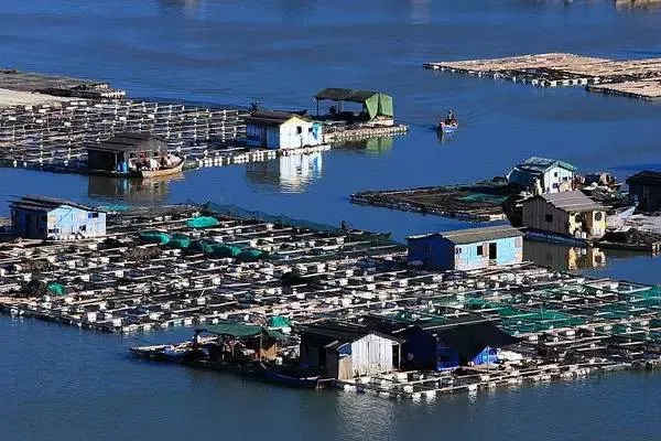 這里由數(shù)十萬個魚箱和數(shù)百個小木屋組成的海上魚排
