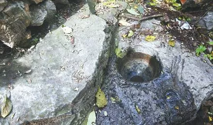 ▲依山而建的石對(duì)臼。