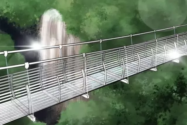 在高空玻璃橋向下眺望,