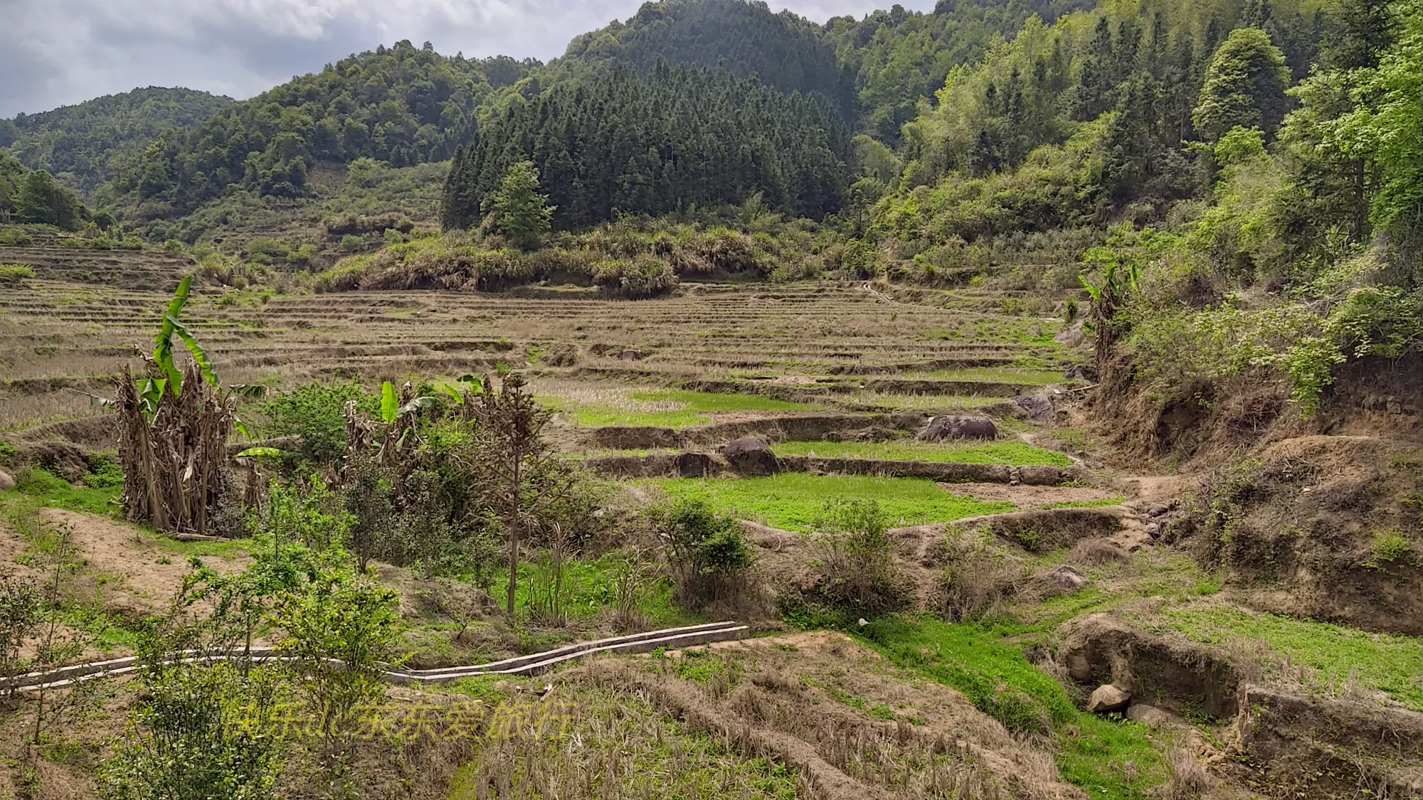 10月8日,我?guī)е掀旁俅蝸淼饺宓卮澹鹊酱逦才c江西彭溪交界的落水寨。落水寨并不難找,沿著公路往江西方向走,過了村莊大約1公里左右,順著水渠往里走就可以到達。