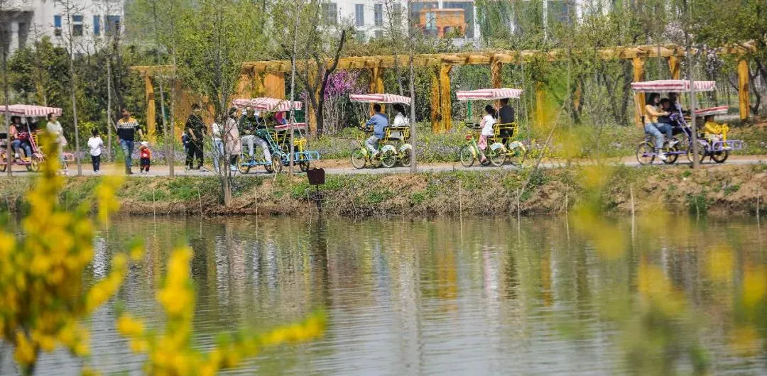 游客和市民們紛紛趁著陽(yáng)光明媚出行游玩,或三兩好友、或一家三口、或情侶綿綿……騎著腳踏車(chē)走進(jìn)自然,呼吸新鮮空氣。小朋友們也來(lái)了,向鳥(niǎo)兒?jiǎn)柡?。鳥(niǎo)語(yǔ)花香,談笑風(fēng)生,在這里,盡享新鮮空氣與美好的春光。