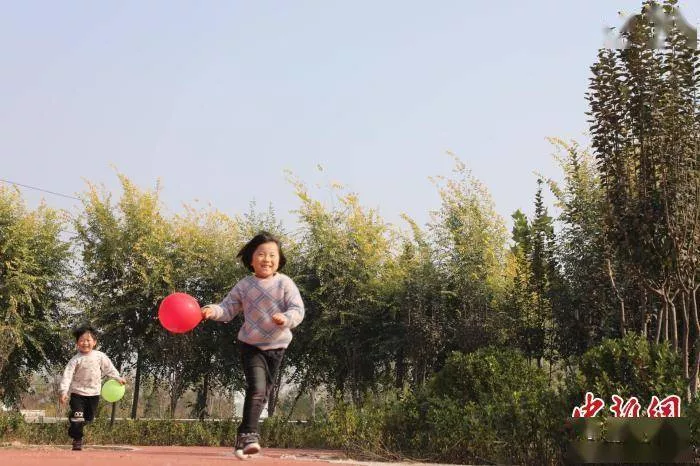 平鄉(xiāng)縣河古廟鎮(zhèn)陳莊村公園里,孩子們?cè)诳鞓?lè)奔跑?!±畋z