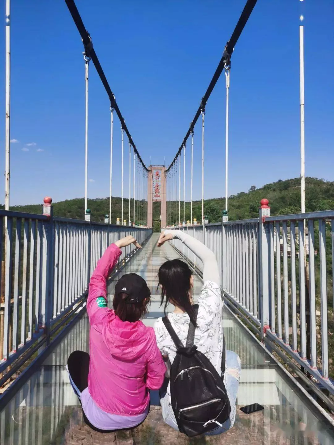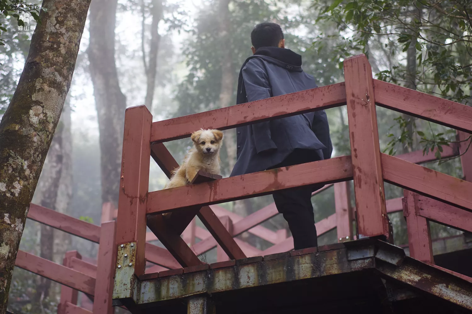 站在山頂棧道上登高望遠