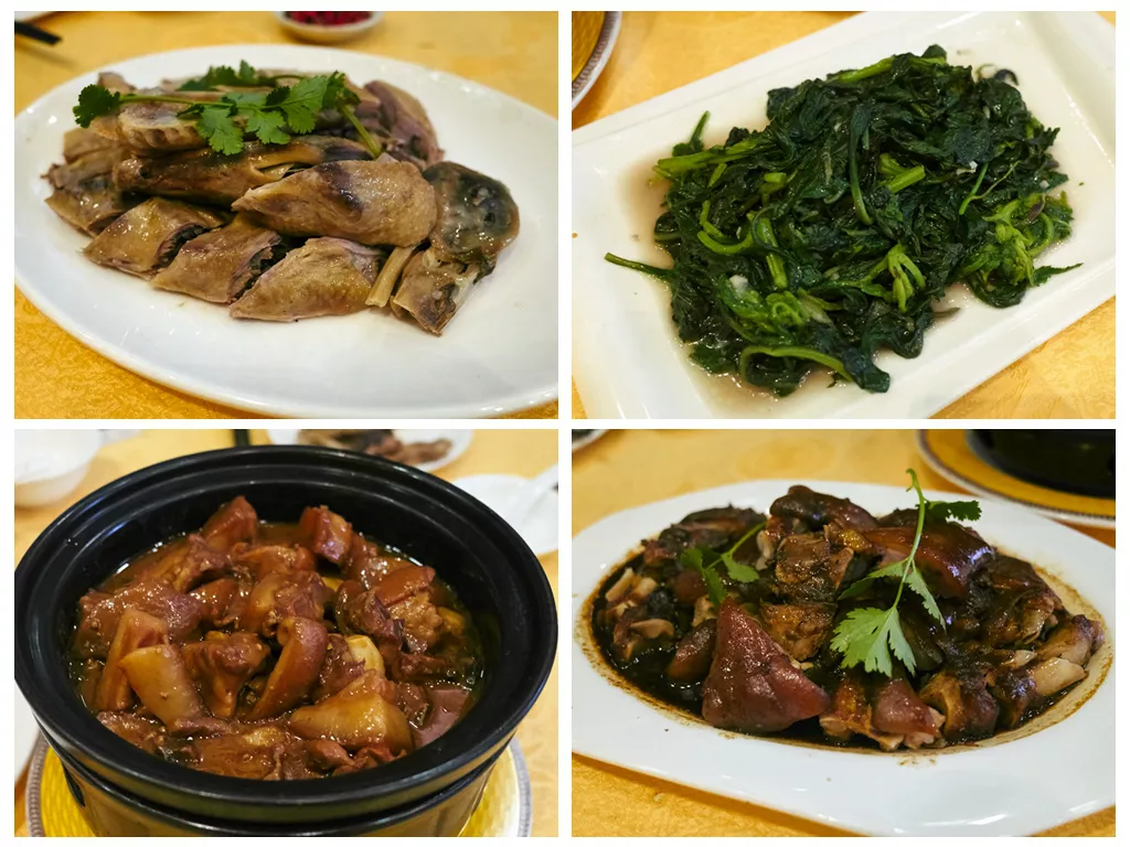 ▲因為五指山之旅就算是圓滿完成了,所以當晚我們在下榻的“五指山旅游山莊”好好的撮一頓,吃什么?還用問嗎,當然是“五指山十大名菜”了。五指山有十大名菜,包括:五指山五腳豬、五指山小黃牛、五指山石鯪魚、五指山水滿鴨、五指山螞蟻雞、五指山小河鮮、五指山牛肉干、五指山魚茶、五指山靈芝湯、五指山野菜等,這10大名菜當中,我們品嘗了五指山五腳豬、五指山水滿鴨、五指山小黃牛和五指山野菜等(見上面的組圖),其中,我對那道“五指山野菜”產(chǎn)生了興趣。這道菜在當?shù)兀?a href='/laobaixing/' target=_blank>老百姓都叫它“革命菜”,民間還流傳著“革命菜”的故事。革命菜又叫野茼蒿,是五指山區(qū)常年生的野菜。這個野菜有著長長的桿莖,葉子翠綠,透著晶瑩之美,用這種野菜炒出來的味道有著一種自然的田野清香。據(jù)說當年馮白駒將軍統(tǒng)率的瓊崖縱隊能在五指山區(qū)堅持革命斗爭23年紅旗不倒,靠的就是這種野菜充饑,故名“革命菜”,從當年起名“革命菜”到今天已經(jīng)有近八十年的歷史。
