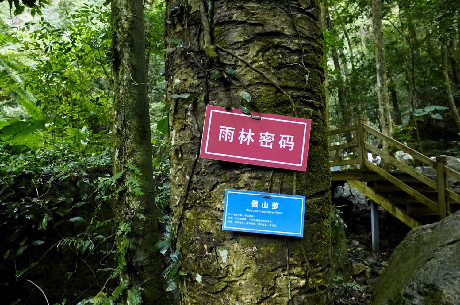 ▲“國家雨林”的大字雕刻是五指山登山起點“國家雨林廣場”標志符號,這里的海拔高度是756米。五指山與南美洲的亞馬遜河流域、印度尼西亞熱帶雨林并稱為全球保存最完好的三塊熱帶雨林,這里發(fā)育著茂密的原始熱帶雨林,生物多樣性極為豐富,所以與其說是攀登五指山,倒不如說穿行于國家熱帶雨林谷更貼切。