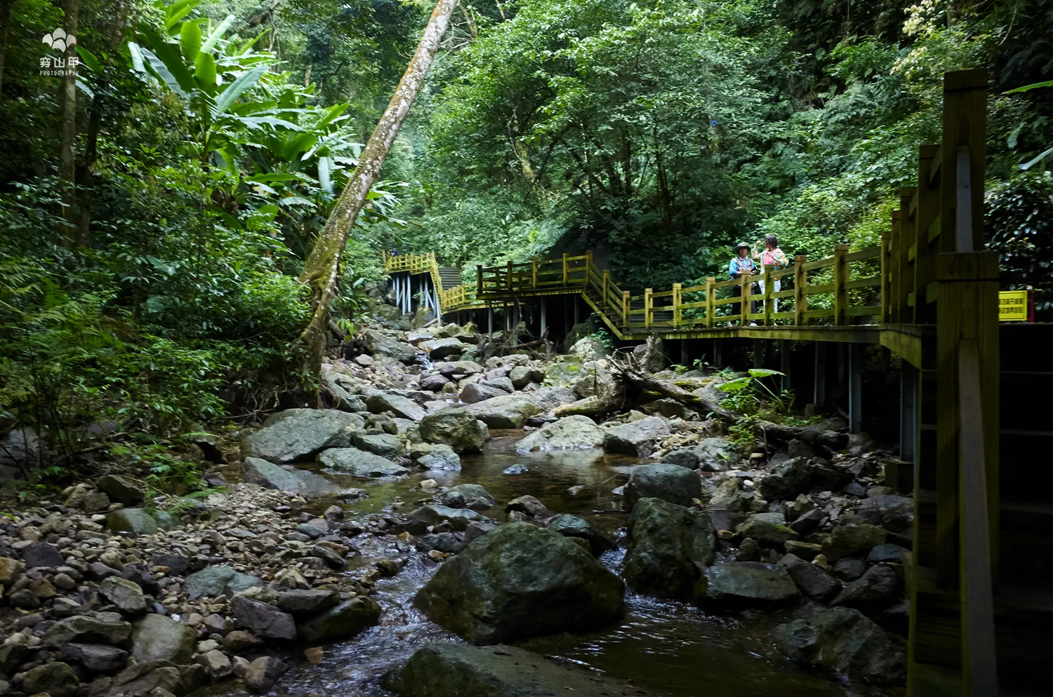 ▲從1250米的登山棧道終點順利返回到分界點,因為還有些時間,我們又前往五指山昌化江源頭,相對登山的路,這條昌化江尋源的山路棧道要平緩輕松很多,游人也比登山路上多了不少。