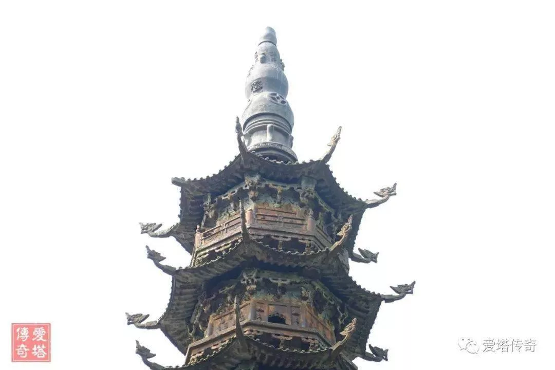 鐵塔最下方是山海造型的底座,其上是力士托舉的須彌座,再上是十三級仿木結構鑄造的塔身,采用一檐一平坐,逐級略有收分