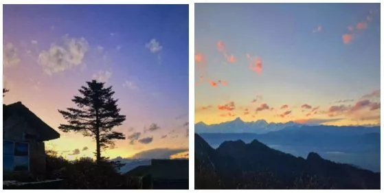 徒步達(dá)到娘娘山營(yíng)地,正是看日落晚霞的時(shí)候,美得不要不要的,各種咔咔咔拍美景。