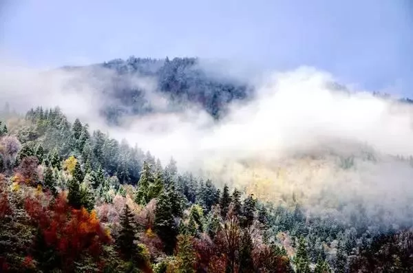 林木蔥郁,深秋時(shí)分紅葉漫山,冬季高山白雪飛舞,讓人彷佛置身仙境。