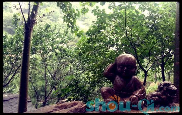 景區(qū)開始的山路上,人工特色比較明顯,路邊有很多“小和尚”的裝飾。