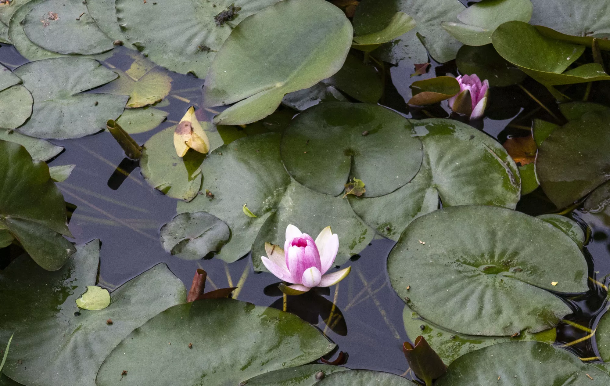 并且睡蓮的葉子卻了一角,很好辨認(rèn)。所以這塊石頭的字要改一改,改成“睡蓮池”比較妥當(dāng)!畢竟兩個大池子里沒有一株是荷花的!