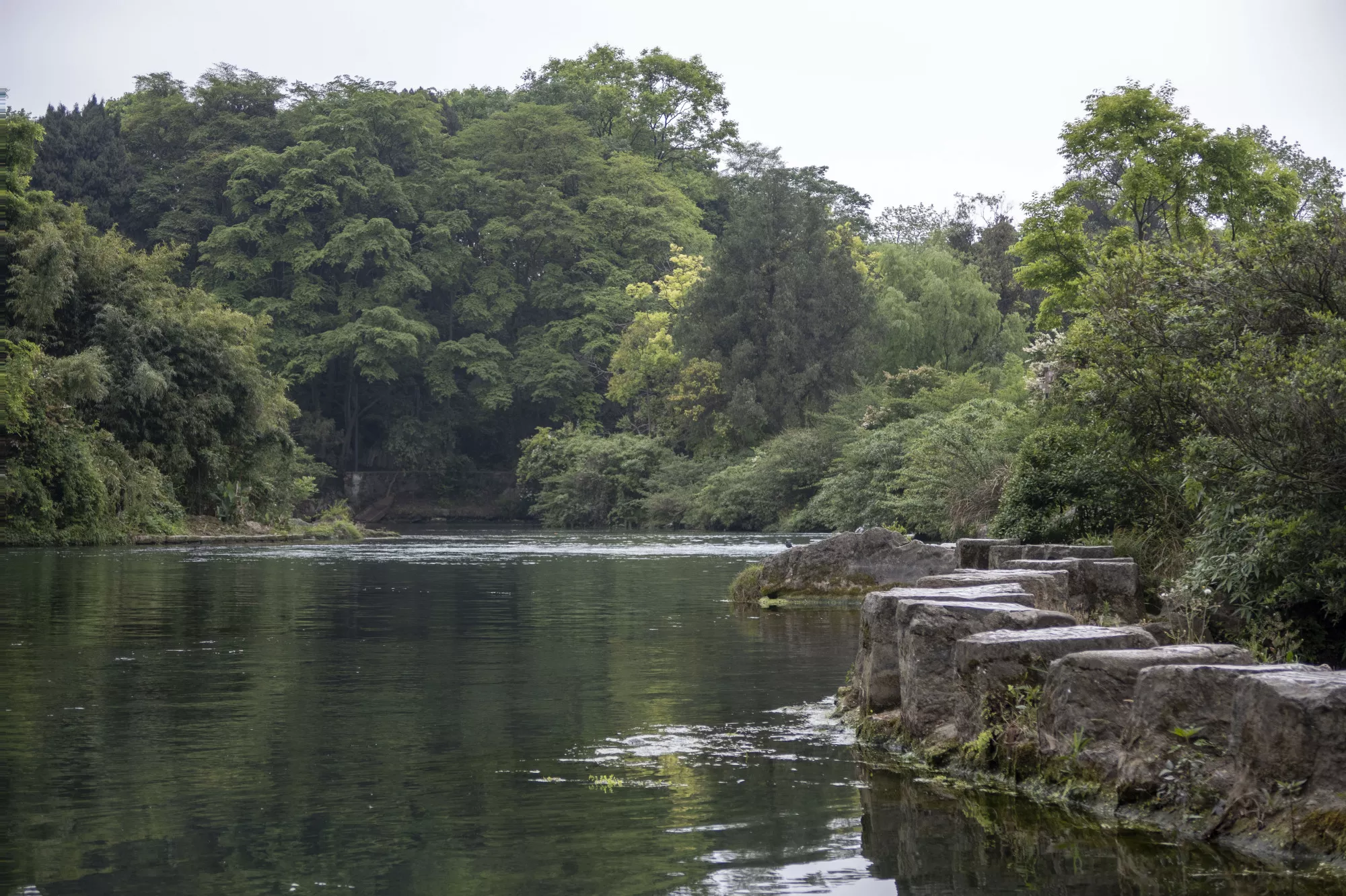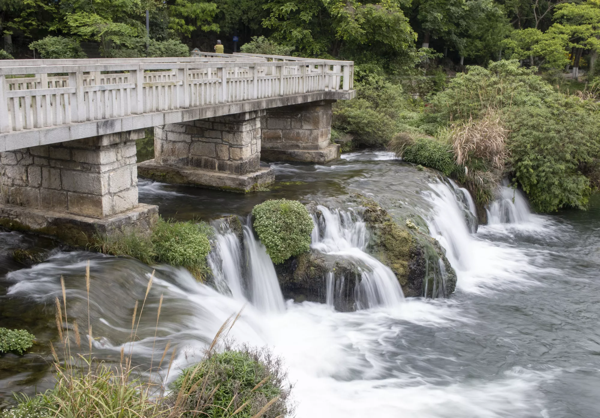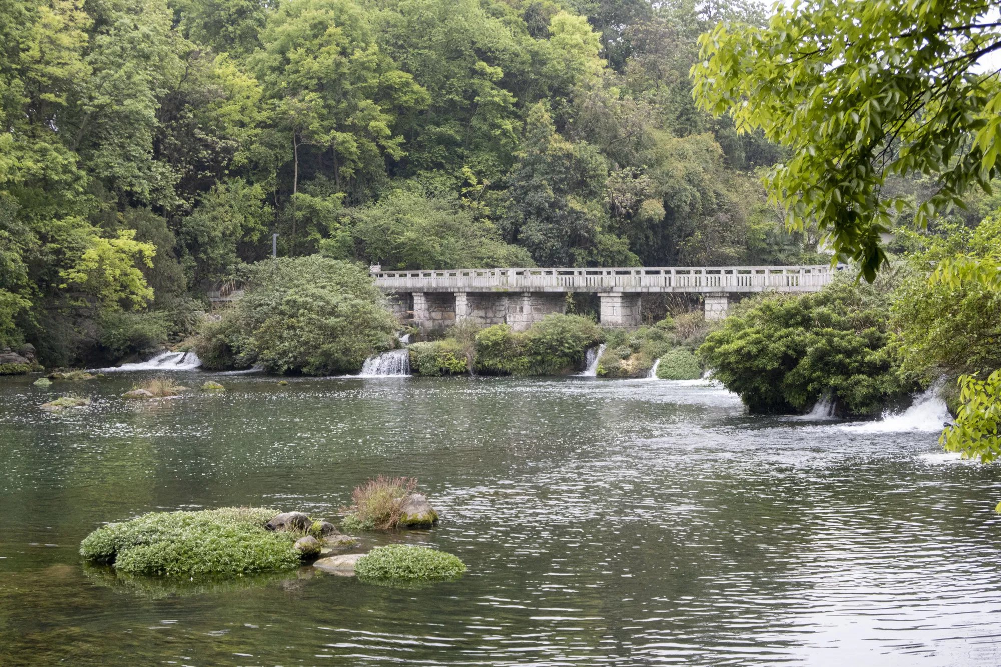 在貴陽很多地方都有:百步橋。花溪公園的百步橋也別有詩意。只見凸出的巖石立在水面,曲曲折折,一面為水,一面為瀑,踏在石墩上,快樂的像個孩子一樣。這也是打卡取景的一個好地方。