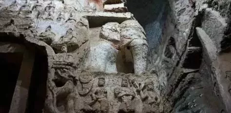 而如今被稱為王母宮石窟的國保級石窟,與西王母本人并沒有太大的關(guān)系,有記載《涇川志》中稱此窟為“大佛洞”,是北魏時期創(chuàng)建的一座中心塔柱式佛教石窟,窟內(nèi)為佛教造像?;蛟S因為與王母宮相伴,后人把這里命名為“王母宮石窟”。