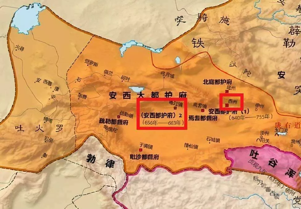 這時(shí)東突厥已滅亡,唐朝把精力集中在打擊西突厥上,西突厥不堪唐軍的暴打,于貞觀二十年請(qǐng)求和親,作為“天可汗”的李世民聲望如日中天,相當(dāng)霸氣地要求它割龜茲﹑于闐﹑疏勒﹑朱俱婆﹑蔥嶺五國(guó)作為聘禮。隨后在龜茲﹑焉耆(今新疆焉耆西南)﹑于闐(今新疆和田西南)﹑疏勒(今新疆喀什)四城修筑城堡,派駐軍隊(duì),史稱“安西四鎮(zhèn)”。