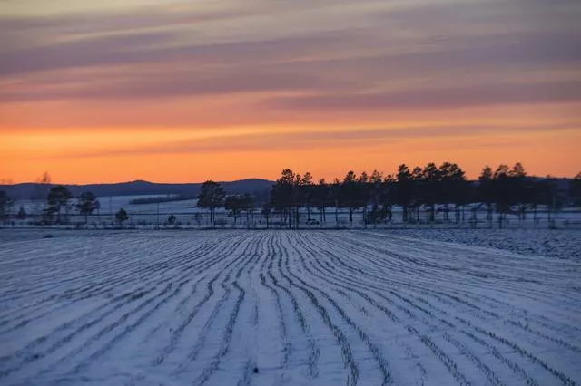 呼瑪。晚霞。很有韻律感的田地。