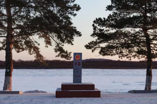 呼瑪。中俄界江。中國173號界碑。我們玩漂移的地方,就在界碑背后的冰封江面上。