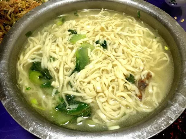 在呼瑪,除了開著車自由自在追光,到處都闊以給你好看。而美食,也是呼瑪?shù)囊淮罅咙c。比如,在呼瑪縣城,我們就吃到了這次冬游黑龍江行最地道的一次手搟面。這店家地道當(dāng)?shù)厝耍覀?1人每人點的大碗,店家倆口子忙不迭將早已經(jīng)餳好的面(餳面,是指將和好的面,在進(jìn)一步加工或烹飪前靜置一段時間,這個過程就叫作餳面。餳面的過程,使得和好的面更易加工,做出的面點更加地筋道、柔軟,口感也更加細(xì)膩和順滑)。再反復(fù)揉搓一遍,但見老板案板上撒上干面粉,將面團壓扁,往四周搟開,將壓扁的面團搟成很薄的薄片,老板娘則將面片象折扇子樣疊起,用刀切成均勻的面條,在切好的面條上撒上干面粉,用手抖開……一會兒,一大盆香噴噴的手搟面端上桌,幾乎瞬間就被“搶光,老板又端上一盆,很快,又沒了,老板說,管夠管飽,緊接著又來一盆……結(jié)賬時,老板仍按照每人一個大碗(10元/大碗)計價,這忒厚道了啊——我們暗忖了一下:以我們在五大連池曾吃過的大碗手搟面份量計,這三大盆得多少個大碗才能填滿啊。