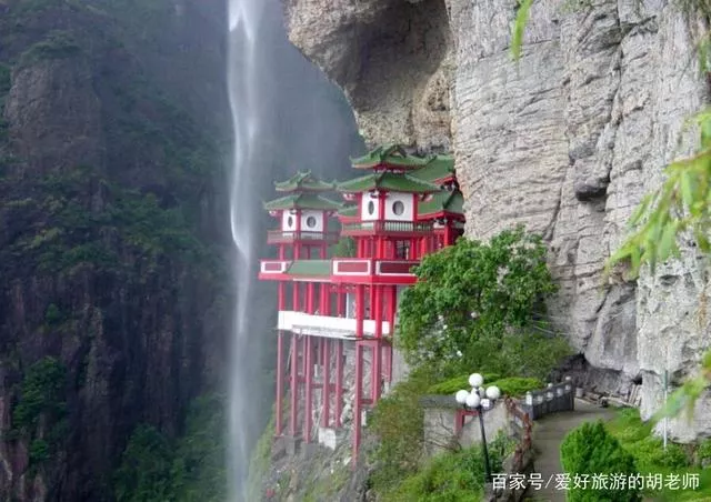 這個瀑布,充分的展示了山有多高,瀑布就有多長,從千米山頂下,瀑布傾斜而下,雖然瀑布規(guī)模不是很大,但是在峽谷中央的時候,就如同珠簾一樣,散開成雨珠了,最妙的是,在瀑布中央有幾個亭子,在夏季旅游的時候,在亭子中觀看這一? ??景,特別的涼爽。