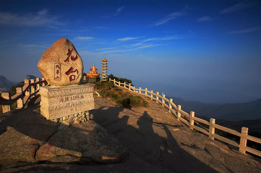 天臺(tái)峰,又稱天臺(tái)正頂,海拔1325米,略低于十王峰,但因天臺(tái)是教徒朝拜地藏"圣跡"之所在,所以往往將天臺(tái)稱為九華山的主峰。峰頂有地藏寺,古名天臺(tái)寺,被來此佛教徒尊為"中天世界”,有"不上天臺(tái),等于沒來”之說。天臺(tái)峰奇峰突兀、怪石嶙峋,并可俯瞰九華街,立于峰頂,有一覽眾山小之感。夜宿九華街,早起登頂天臺(tái),一路清幽,加之仙霧縹緲于山間,恍若置身三界之外。
