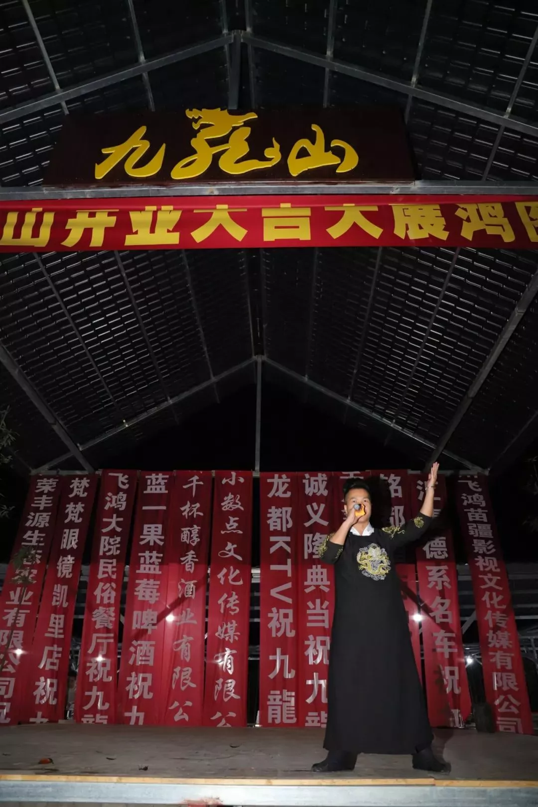 龍山風(fēng)景秀麗,景色怡人,開業(yè)當(dāng)天,喜迎各方賓客、現(xiàn)場人山人海,彩旗飄揚,熱鬧非凡。王飛鴻團(tuán)隊、黃平苗歌協(xié)會、阿丹可、英子、楊勝桃、張語芳等網(wǎng)紅現(xiàn)場直播、助陣……