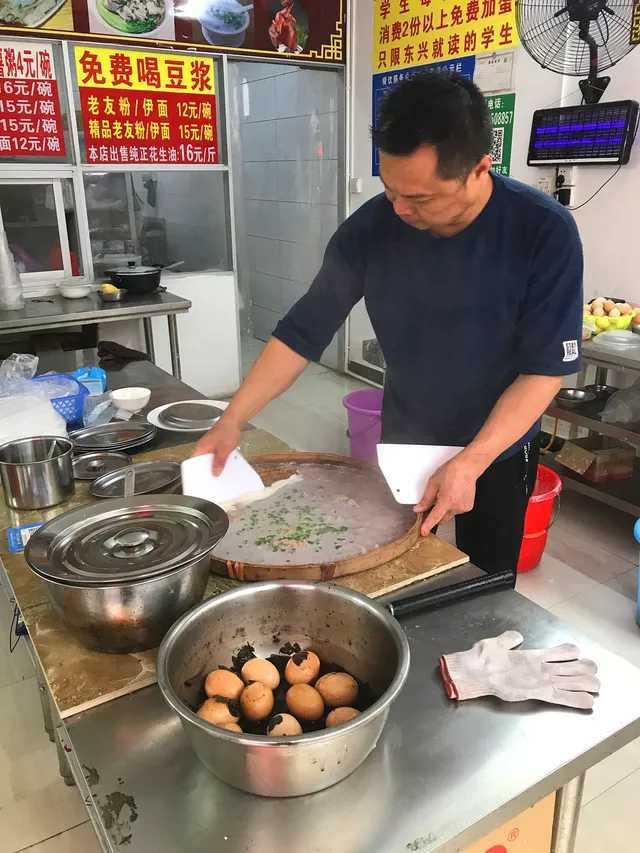 短暫的東興國門景區(qū)一游很快就結(jié)束了,沒想到在準(zhǔn)備離開東興的時(shí)候,在客運(yùn)站吃到了我心心念念的卷粉。這家位于東興客運(yùn)站的卷粉店,并沒有其他城市客運(yùn)站的浮躁,看起來是個(gè)樸樸實(shí)實(shí)的小店,它家主營卷粉,卷粉有肉碎腸粉、雞蛋腸粉、海鴨蛋腸粉、牛肉腸粉等。