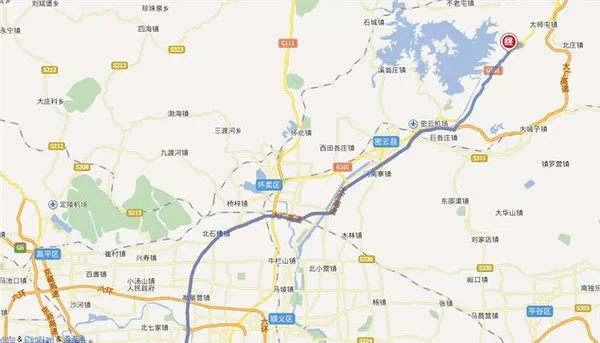 北京市區(qū)前往白龍?zhí)毒皡^(qū),下高速之后的行車路線。