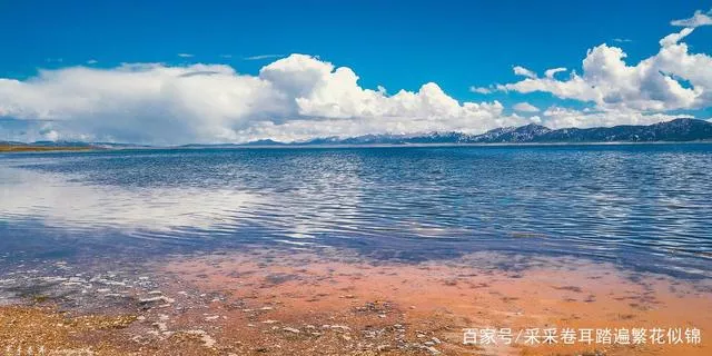 橙色的灘涂、湛藍的湖水交織融合,對比鮮明的色彩構(gòu)成最為入心的生動。