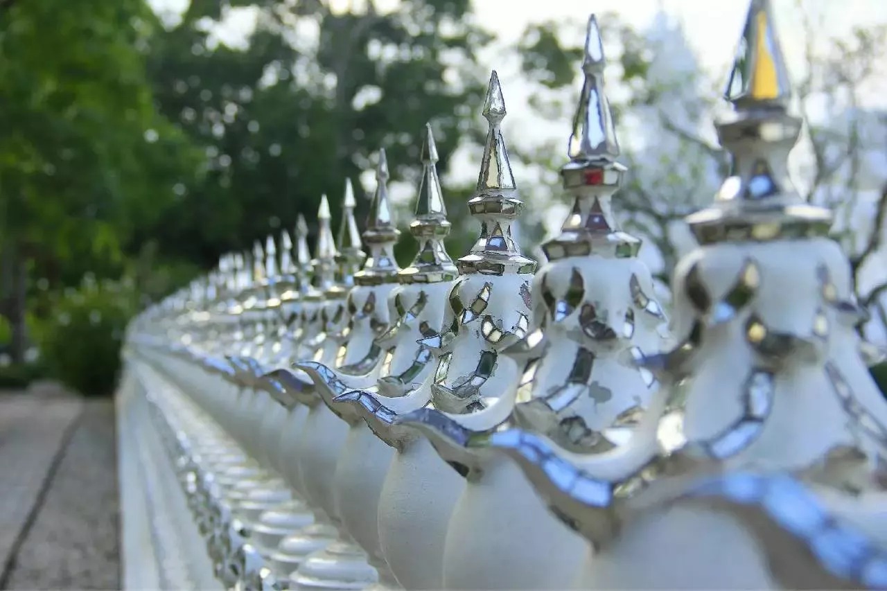 白龍寺俗稱白廟,純白色的外貌一改傳統(tǒng)的寺廟建筑,作為近代建筑,泰國(guó)著名藝術(shù)家Chalermchai Kositpipat在白廟之中加入鮮明的個(gè)人風(fēng)格及現(xiàn)代元素。無(wú)論從入口到殿內(nèi),在參觀過(guò)程中的每一步內(nèi)都能讓人大吃一驚。