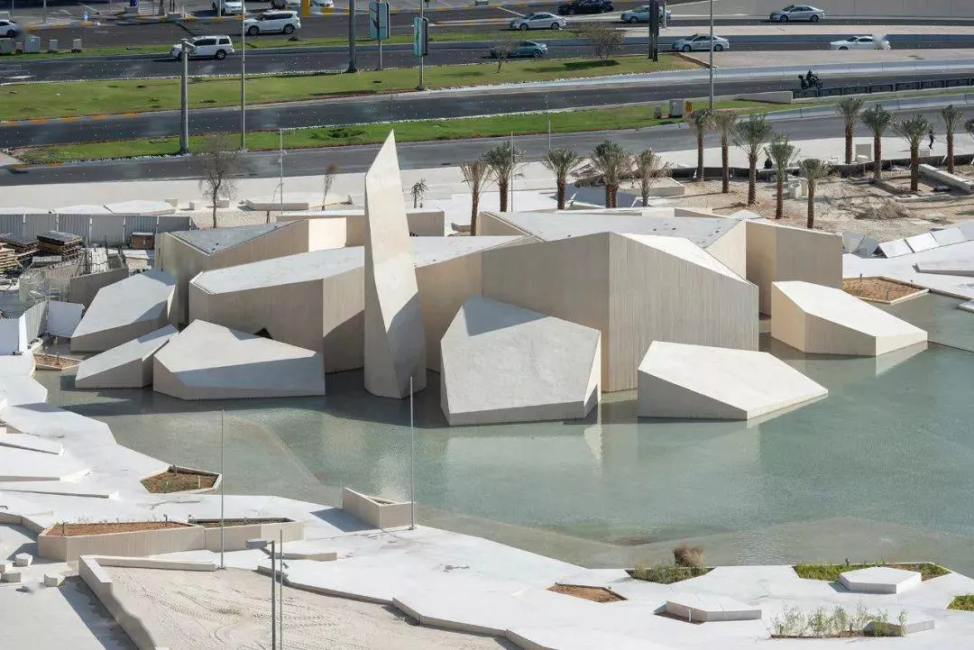 整個寺廟由一系列相互連接的小建筑物組成,這些建筑物形成了一個個洞穴狀的結(jié)構(gòu),并被嵌入到公園內(nèi)的水景中。水為建筑創(chuàng)造了一個天然的隱私屏障,為人們提供了僻靜的朝拜空間。