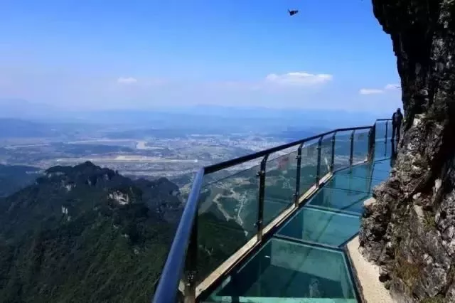 當(dāng)然提起天門山,它還有一個(gè)——“天門山懸崖玻璃棧道”,全長約110米,橋?qū)?.5米、落差188米、是目前省內(nèi)在建的玻璃棧道中落差最大的懸崖棧道。