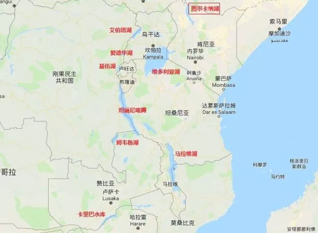 圖爾卡納湖位于非洲肯尼亞北部,和埃塞俄比亞邊境相連,形態(tài)呈南北長條型,面積約為6405平方公里,是非洲第四大的湖泊,面積僅次于維多利亞湖、坦噶尼喀湖馬拉維湖。非洲的很多湖泊都位于東非高原,這些湖泊的形成大多和東非大裂谷有直接的關(guān)系,由于非洲板塊內(nèi)部的張裂,巖層向東西兩側(cè)分離,使得斷裂帶所在區(qū)域發(fā)生斷裂下陷,流水向低洼處匯聚,從而形成湖泊。