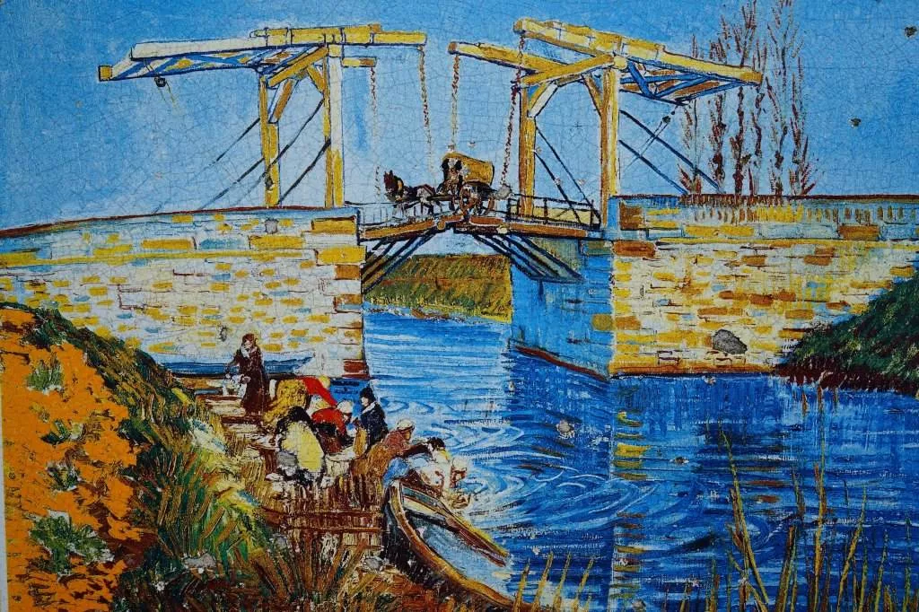 《梵高的吊橋》是梵高的一幅名畫,其原型就是位于阿爾市區(qū)以南3公里處的一座吊橋。這座吊橋在1960年重新整修復(fù)原,雖然與最早的形態(tài)略有差異,但還是可以讓人立刻聯(lián)想到那幅梵高的名畫。橋旁也有一塊提示牌,提醒游客這座普通橋梁的非凡之處。