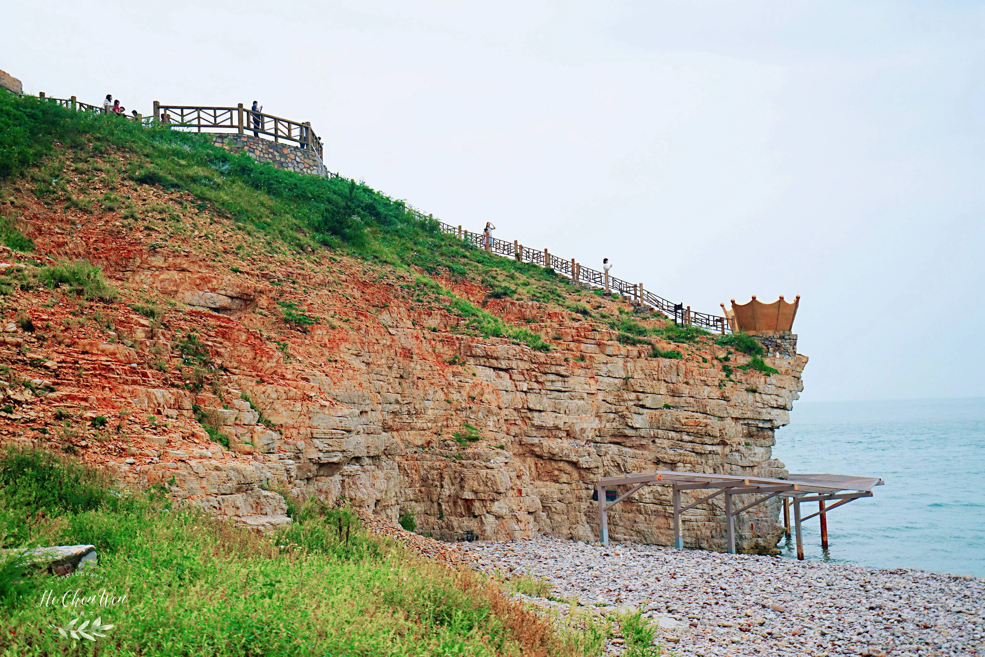我們差不多中午抵達的長島,去民宿放好行李之后,先游覽北線的九丈崖,看看高聳入云的懸崖從海邊拔地而起。當你走進懸崖,置身懸崖下時,仰望絕壁萬丈,除了感慨大自然的造化,更多體會到的是一種震撼。看完九丈崖就直接前往月牙灣,步入月牙灣公園,就能看到沙灘上的五彩石,這些卵石晶瑩如珠,造型色彩相間,花斑圖案精美,很是神奇。在月牙灣還可以遠眺南長山島頂部的望夫礁。