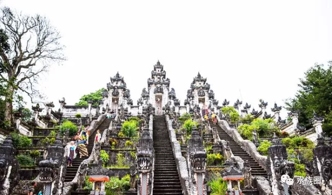 這個(gè)寺廟群位于海拔1000米以上。它是印尼巴厘島最重要的寺廟之一。又名1000步廟,天空之門。阿貢山作背景,觀光景色很美。這個(gè)寺廟就像是在云里。