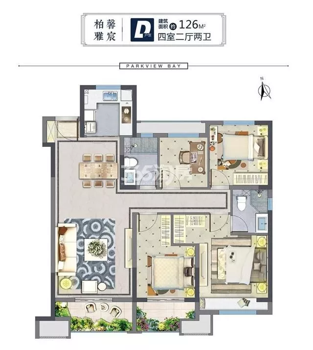 建筑面積約為126㎡四室兩廳兩衛(wèi)
