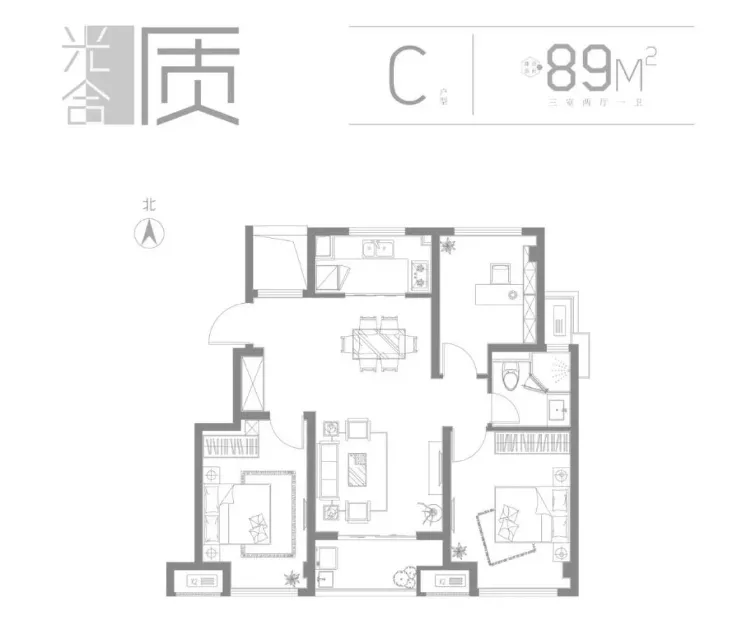 ▼揚(yáng)州萬科未來之光89㎡三室兩廳一衛(wèi)C戶型圖,是中間洋房的戶型。